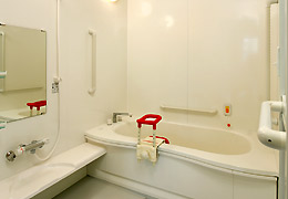手すりやコールボタンなどが設置され、安心して入浴できる浴室